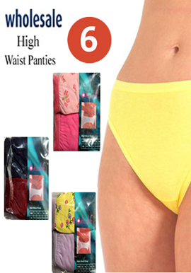 Women's Soft Cotton Wholesale lot of 6 High Waist Panties