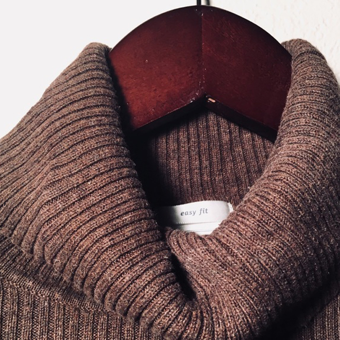 - Ribbed turtleneck